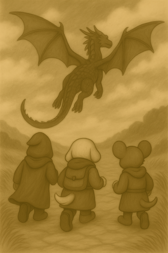 急旋回しながら上昇するツヴェイ。その翼が切る風は想像以上に荒々しく、三人はとっさに身を伏せた。地上すれすれで渦巻く風が、草を逆立て、小石を跳ね飛ばす。