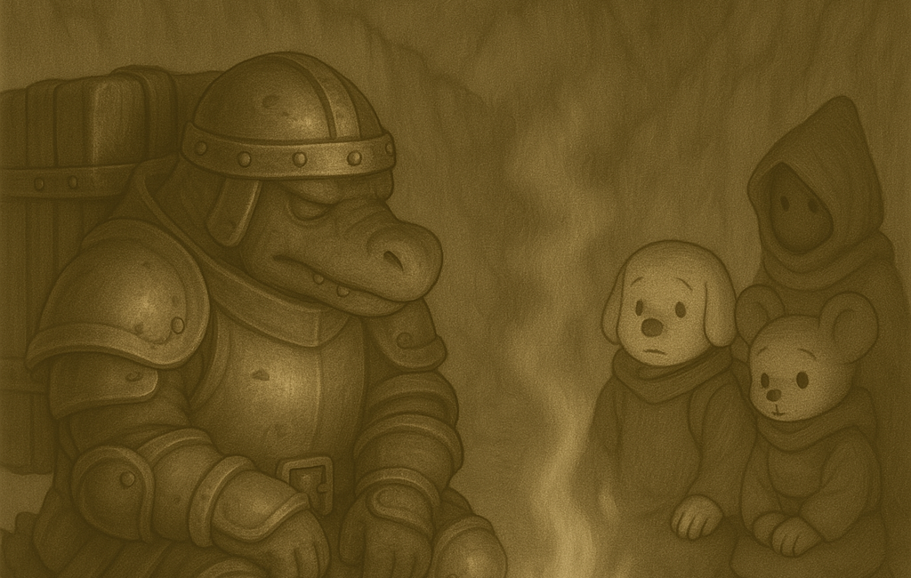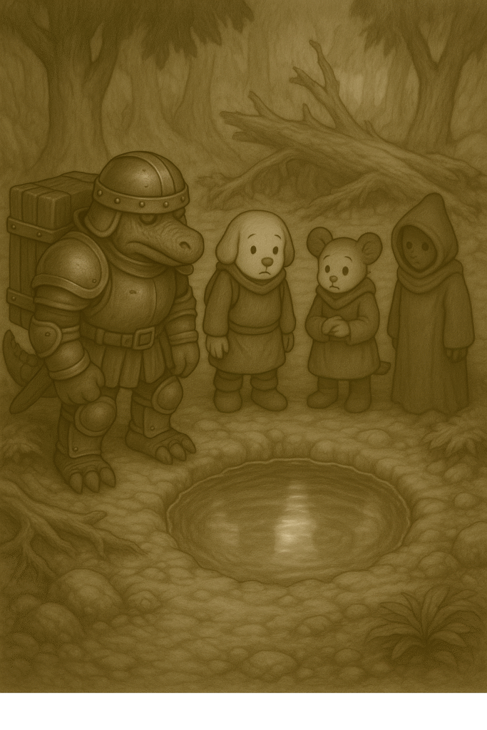 水面に映っていたのは、確かに人影だった。だが、その姿は今の四人とは異なっていた。アイアイは背が高く、何か兵士のような鎧を身につけていた。グリグリはぐっと痩せ、どこか険しい顔つきになっていた。猫の使者は、その目に光がなく、ダガールに至っては──いなかった。