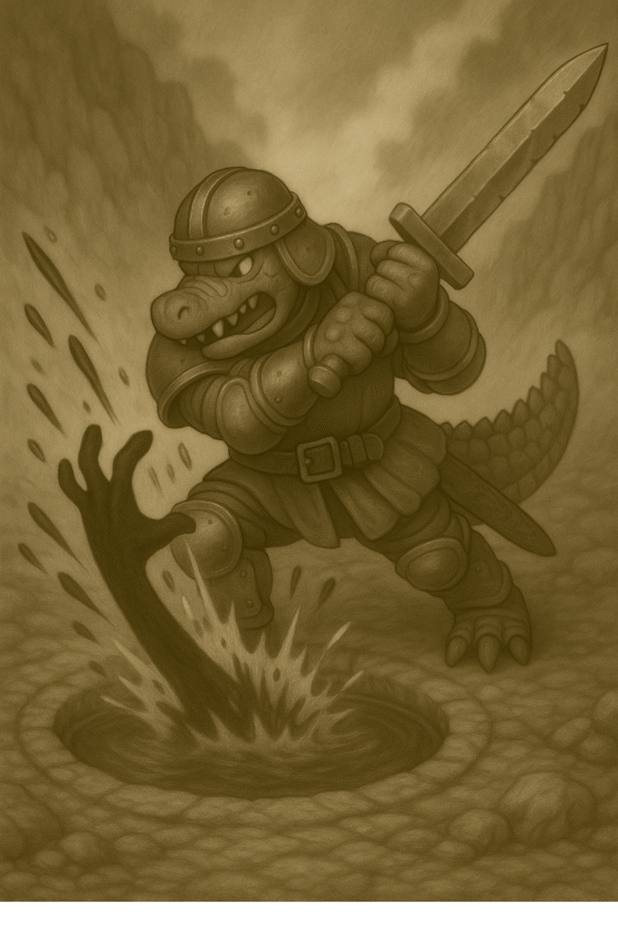 猫の使者が叫んだその瞬間、穴の水面がひとりでに泡立ち、中心から黒い“腕”のようなものが、にゅるりと伸びてきた。