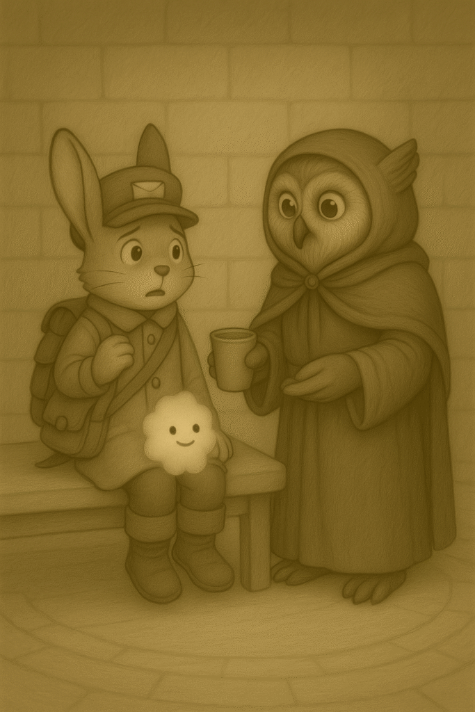 アイルの表情が曇るのを察知したかのように、モヤモヤがアイルの腕に寄り添い、光をわずかに揺らす。