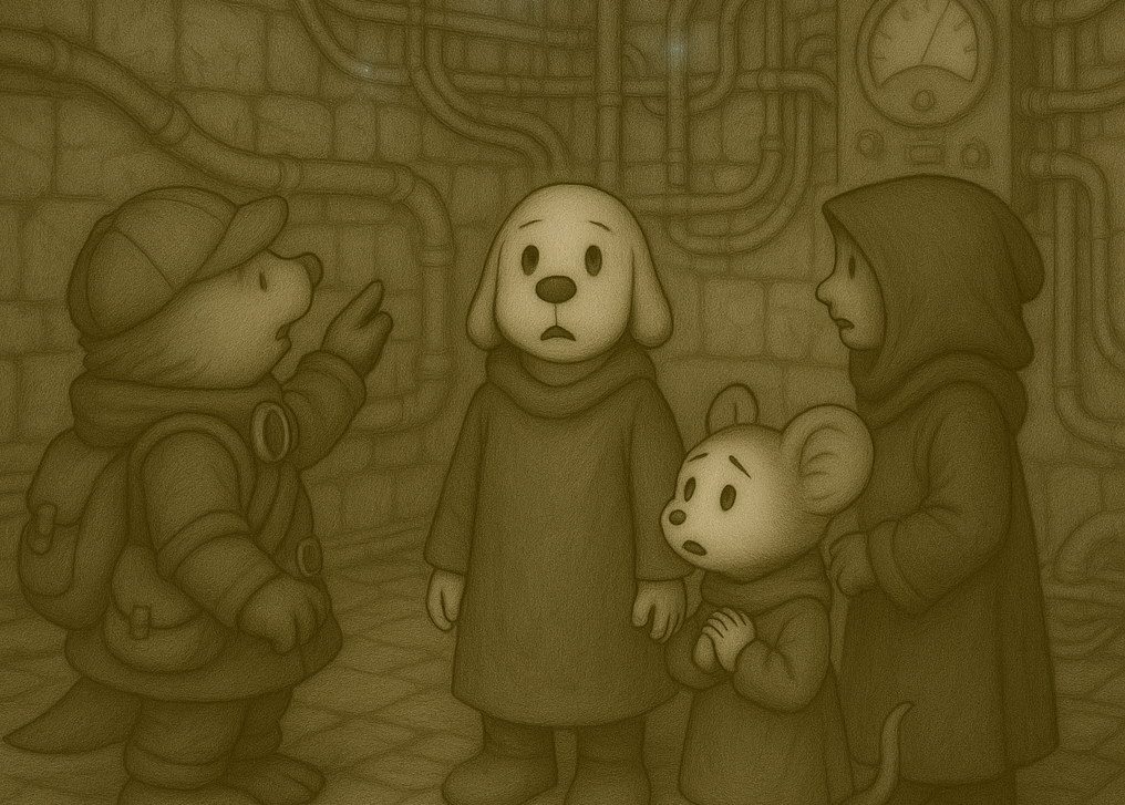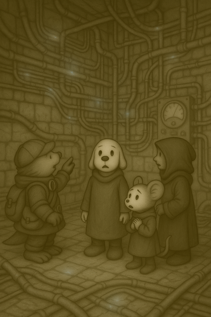 狭い銅管の間をかいくぐり、彼らは薄暗い裏道を見つけ出した。細い通路は人ひとりがやっと通れるほどで、天井も低く、圧迫感に満ちていた。