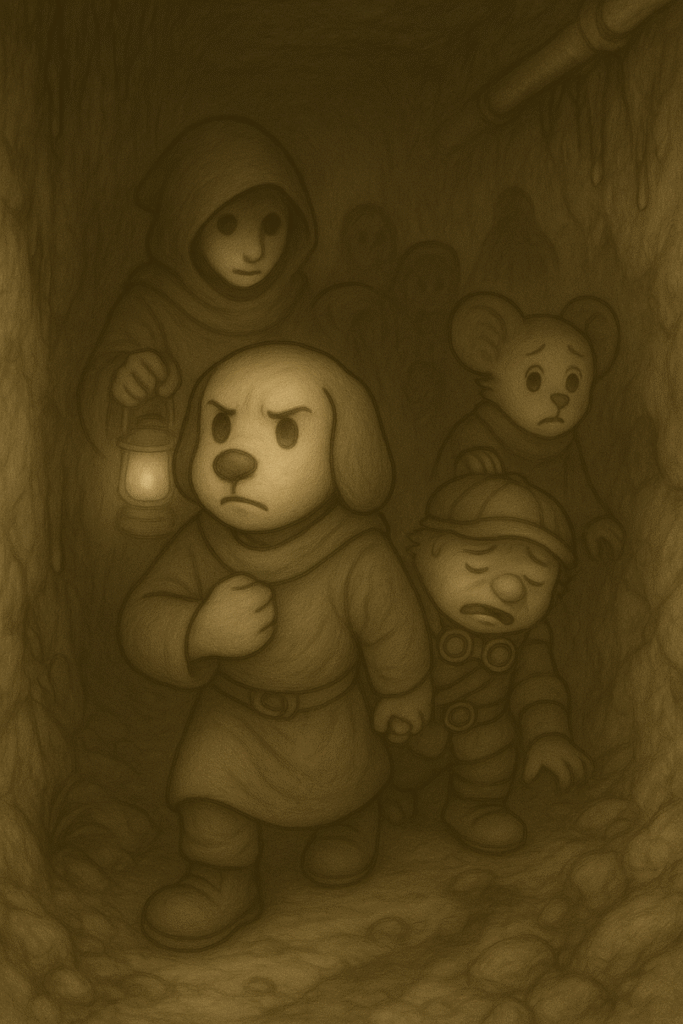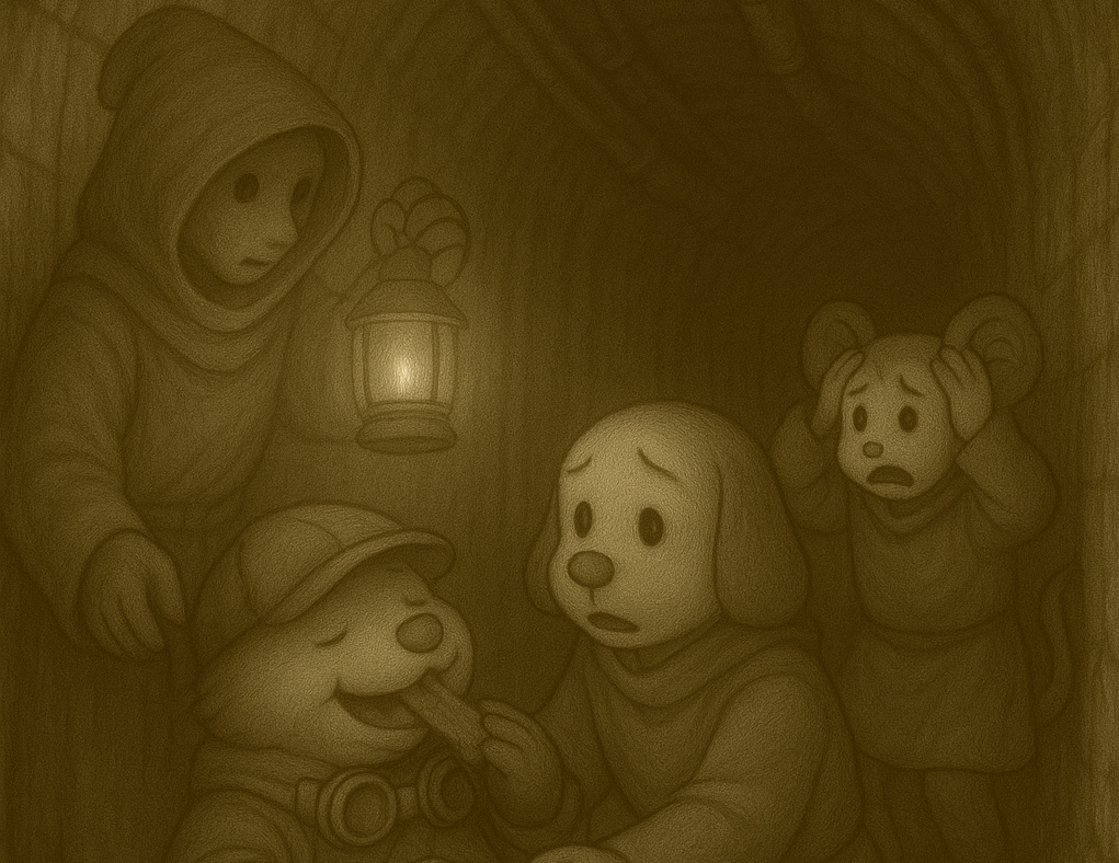 誰に言うでもなくアイアイは、まっすぐと通路の先を見据えながら、はっきりとつぶやいた。その言葉のあと、誰からということもなく四人は互いに手をつなぎあった。そして手を取り合ったまま暗闇を進み続けた。