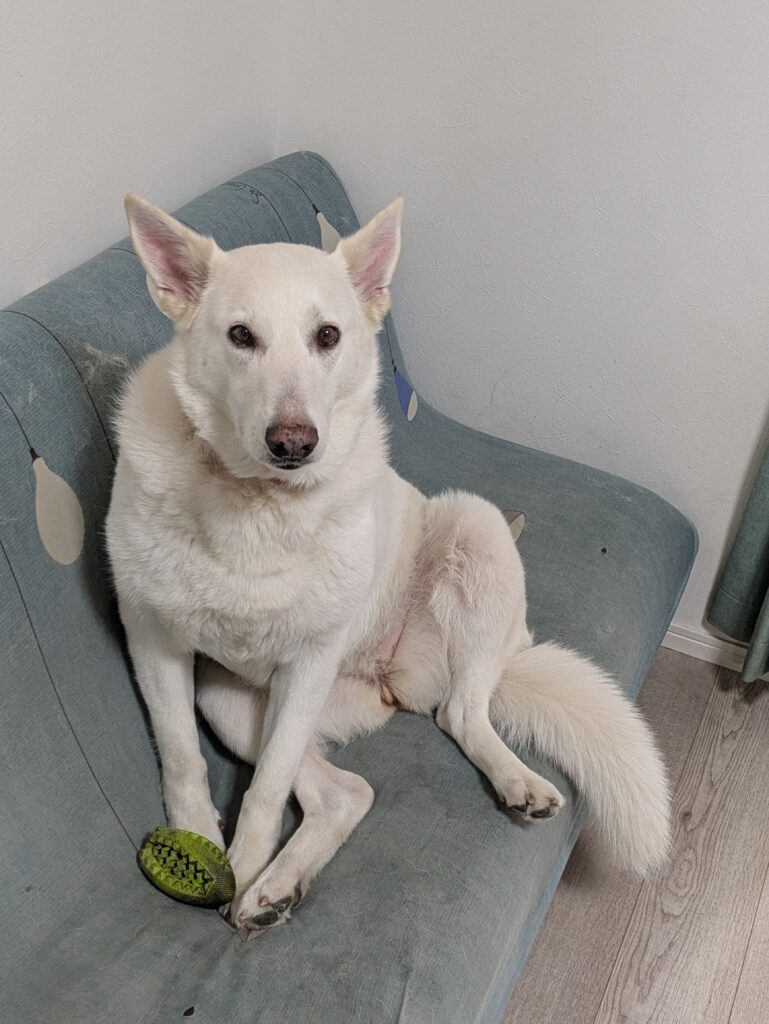 2年暮らしたオランダで出会い、一緒に帰国した白モフ犬ラテ。
