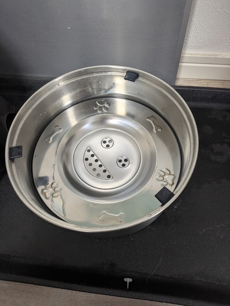 器はすぐひっくり返されるし、プラスチックは噛まれてボロボロ、水皿のまわりは毎回びしょ濡れ。