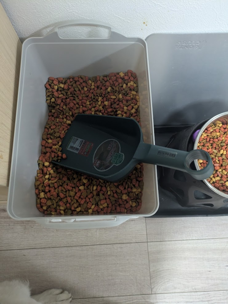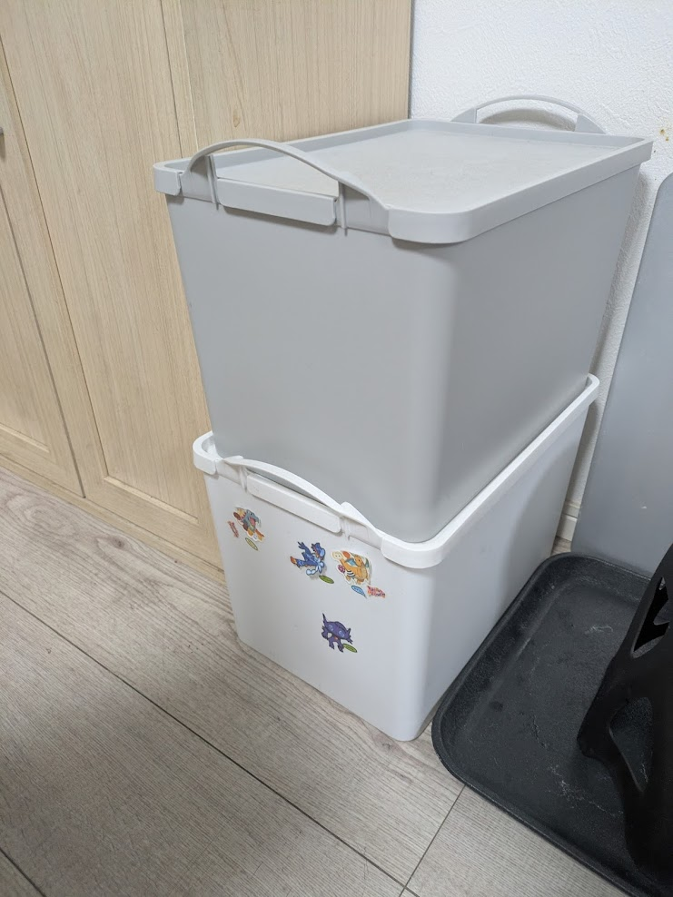 フードの保管には、ダイ〇ーで買った大きめの箱を使っています。