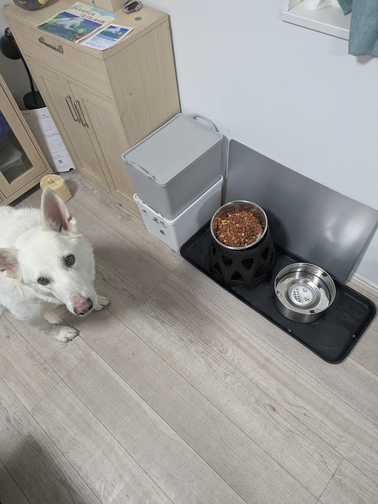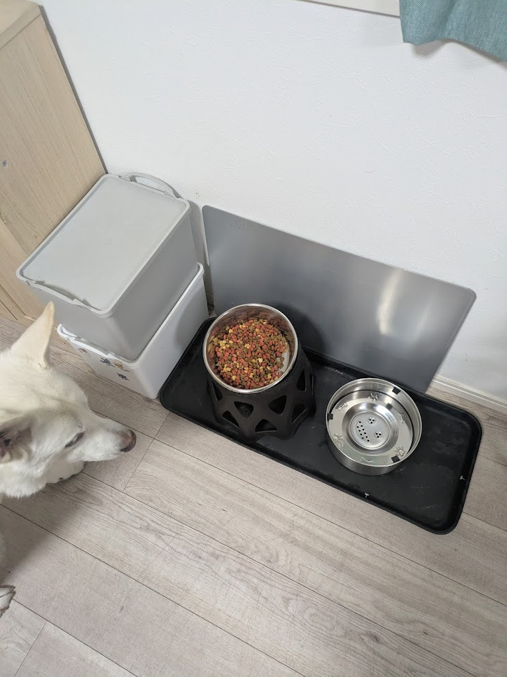 大型犬と暮らしていると、給餌場まわりって本当に悩みが尽きません。