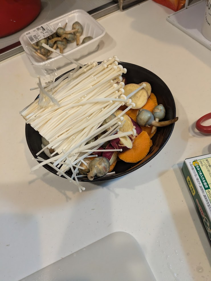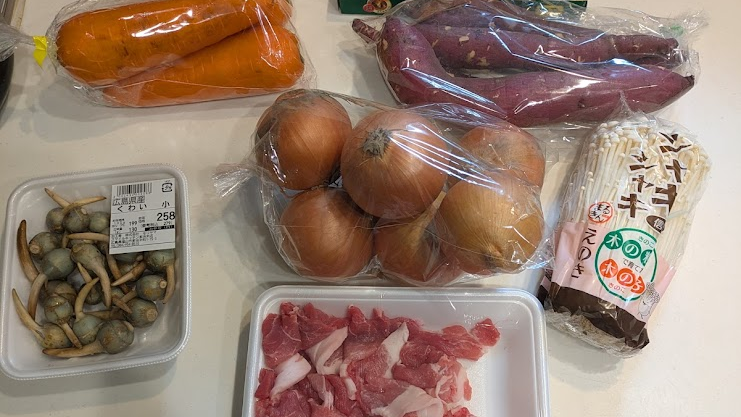 さつまいも!くわい!(地元名産で給食にもよくでます)!えのき!