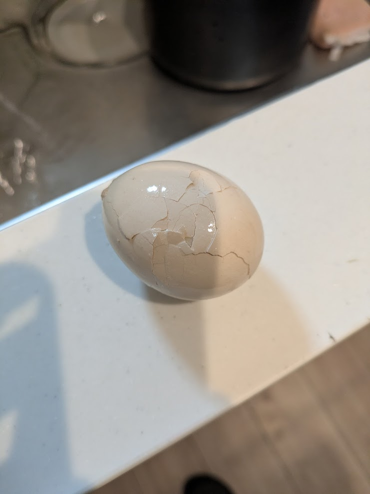 卵の広範囲にヒビが拡がりカラを取り外しやすくなります。