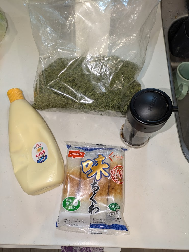 材料:ちくわ・マヨネーズ・醤油・青のり