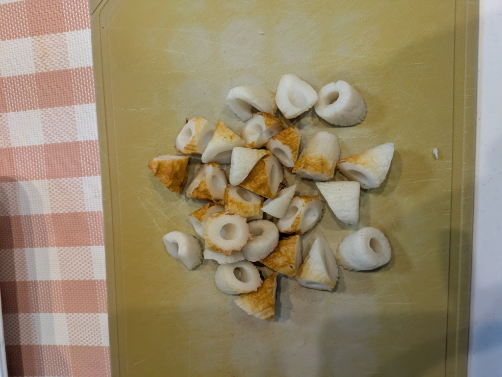 ちくわを乱切りにします。