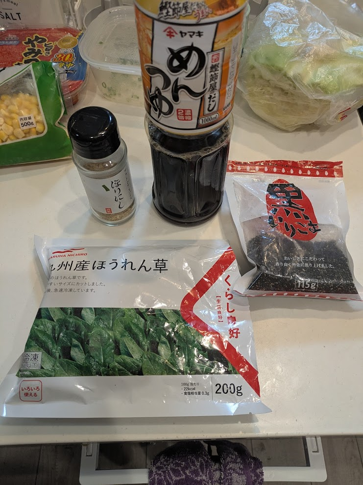 材料:冷凍ほうれん草・めんつゆ・鰹節