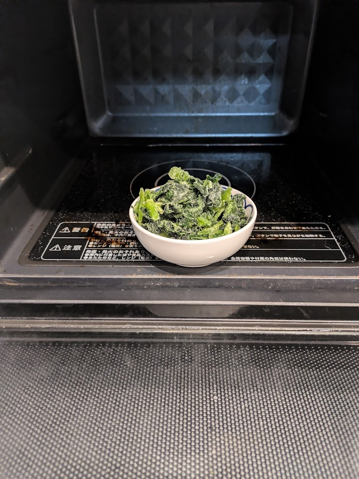 ※かなりカサが減るのでかなり多めに皿にもってレンチンします。