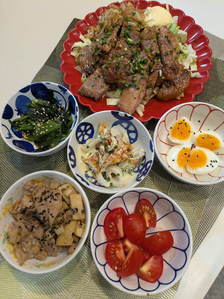メインだけ考えて、あとは「簡単」「使いまわし」小鉢を何品か足していくという