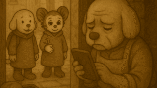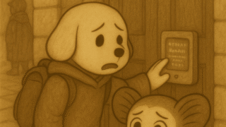 誰かが、図書館の前で立ち止まっていた。アイアイはその建物を見て、思わず駆け寄った。「……図書館! 情報があるかもしれない!」しかし扉には、デバ石の端末と、小さな文字が浮かんでいた。“アクセス権限が確認できません。情報取得条件:未達。ご利用を...